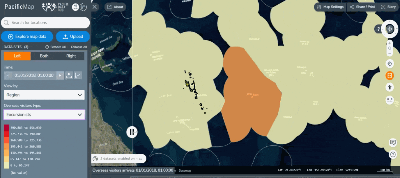 One platform allowing for these analyses is the Pacific Data Hub (PDH), the most comprehensive open data portal in the region. The portal stands out for its superb interactive map, which allows users to visualize and compare most available datasets, including those on tourists and excursionists. Thanks to this tool, I found out that among Fiji, Vanuatu and New Caledonia, Fiji attracts the most tourists, whereas New Caledonia and Vanuatu primarily welcome one-day excursionists. At the same time, Vanuatu attracts half the excursionists as New Caledonia, despite being home to an impressive coral reef. This suggests that there is untapped potential for Vanuatu to attract more visitors, for instance, by capitalizing on the Millennium Coral Reef.