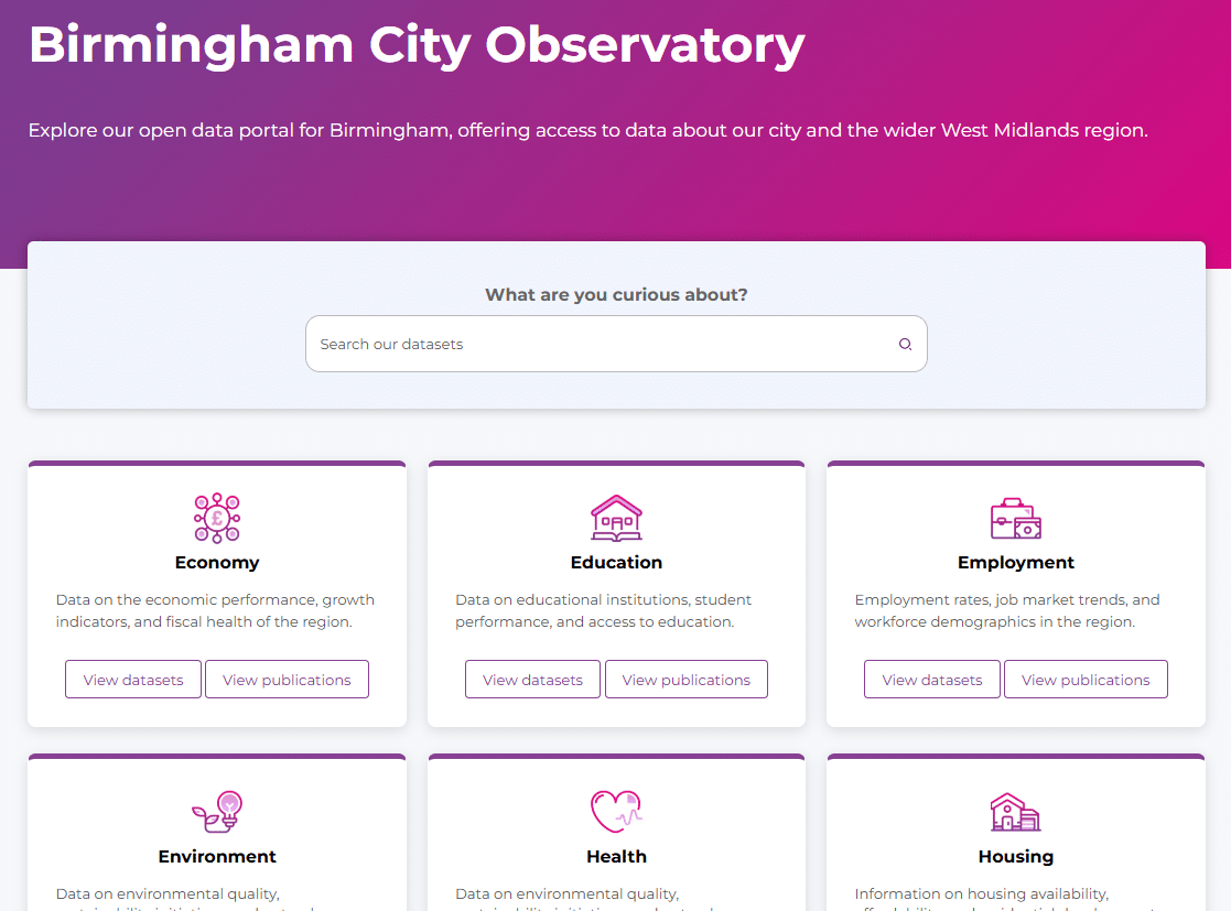 Our Birmingham City Council colleagues are using the Observatory because it’s so easy to get to the data. It’s there 24/7, no need to chase approvals or figure out who owns it. Sure, internal data might be more granular, but for many, the public version is good enough to start with.