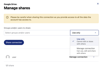 The solution now includes an innovative feature to securely share connections with other users, without revealing the associated credentials in order to provide security. This means that an administrator can add a connection to a business tool and save it in the solution. They can then share it by name with the users of their choice, providing direct access to the business tool while preserving the anonymity of their identifiers. This efficient, secure approach gives users greater autonomy by allowing them to enrich the catalog with new data assets, without having to make time-consuming requests for access or credential sharing around third-party tools.