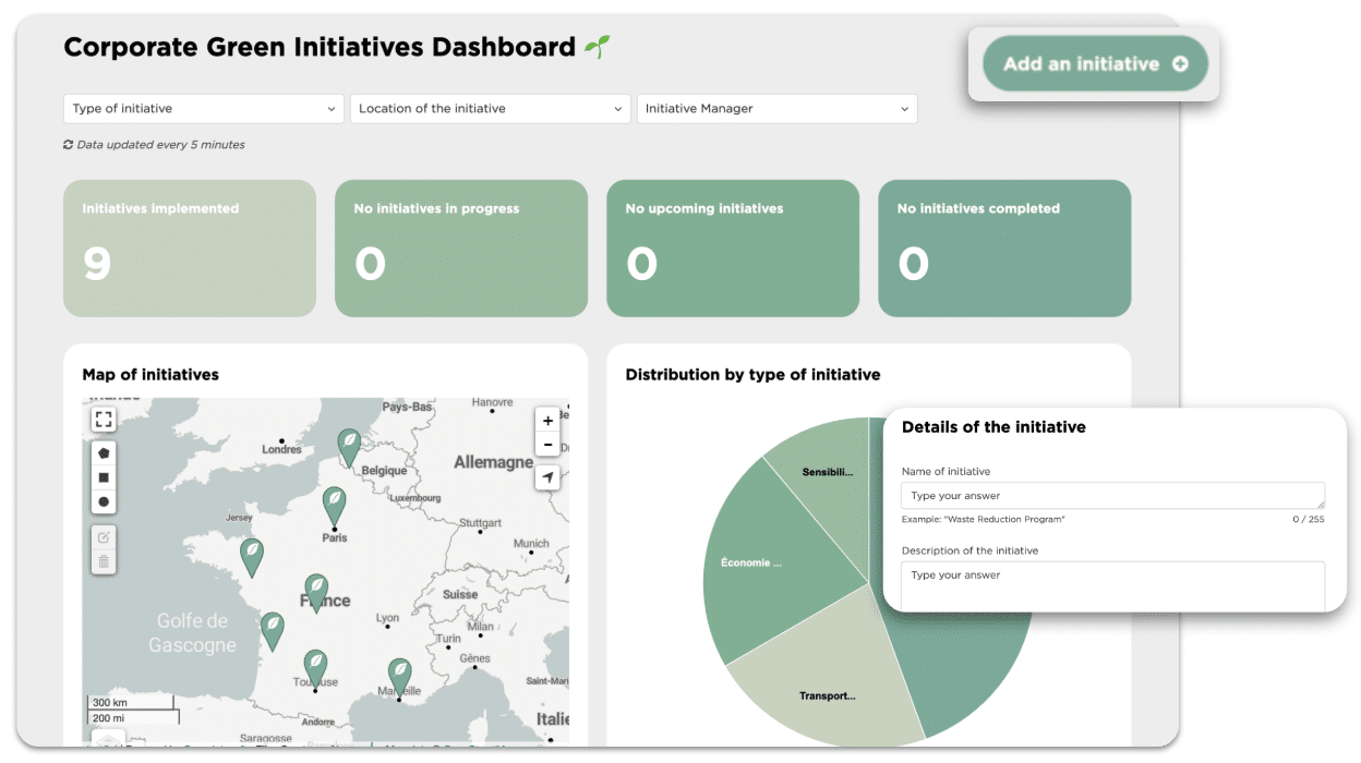 On the Huwise platform, this type of feedback can take the form of a concrete workflow. Clicking on a custom “Add an initiative” button opens an integrated form, with clear, easy to complete fields. Once sent, the request is queued, analyzed and prioritized by data teams.