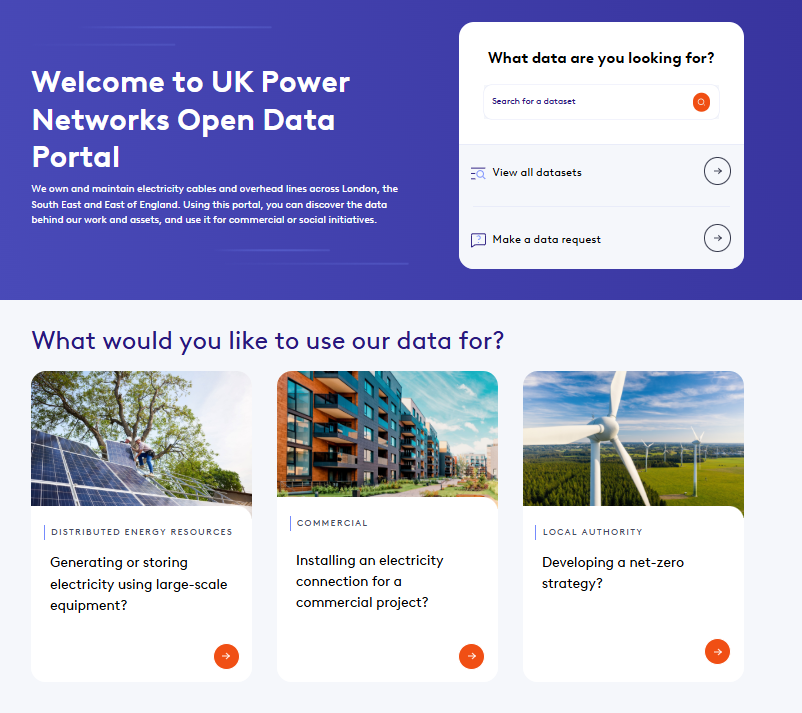 While UK Power Networks was sharing open data before, this was ad-hoc and in different locations across our website. So, we deployed an intuitive, centralised, marketplace which allows our ecosystem completely free self-service access to our data products. Working with Huwise and through close engagement with our stakeholders, UK Power Networks has designed a marketplace experience that meets the needs of different audiences, from the most technical users (such as academics and developers looking to connect new generation assets), to those who are new to both data and the energy world, such as local authorities looking to accelerate their own decarbonisation.