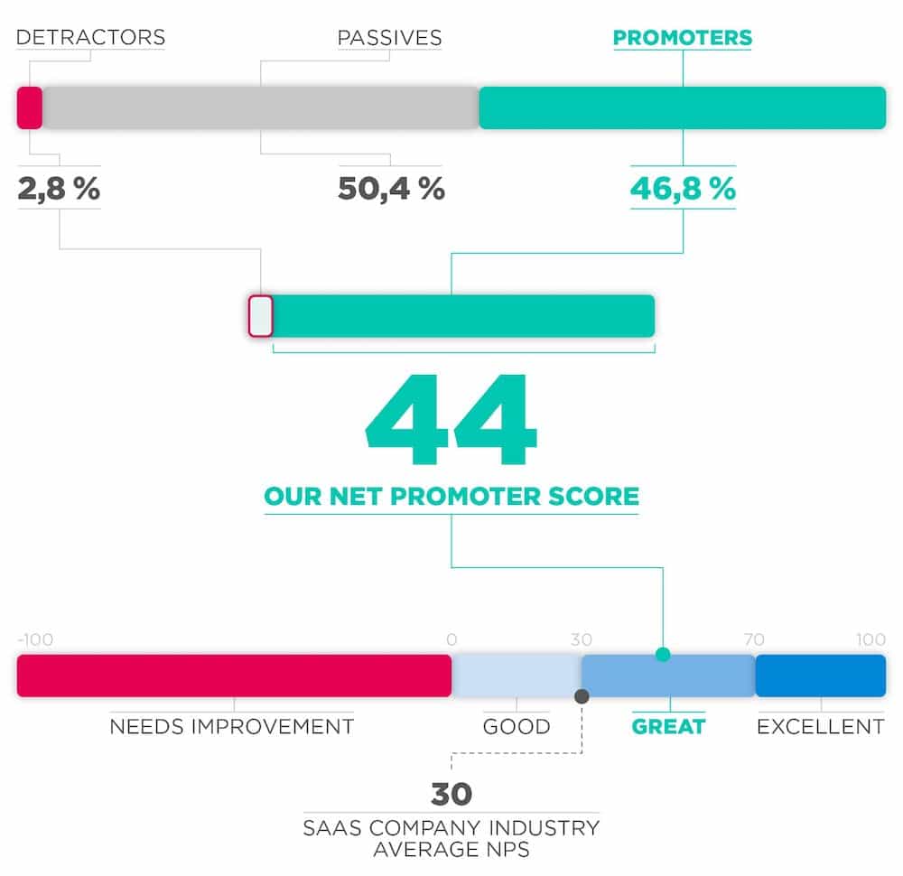44 is indeed a good score, especially since the average for SaaS software companies is 30. Customer satisfaction results from the convergence of various factors but, at Huwise, I think that that little something extra that makes our customers so fond of our company is our approach to customer support.