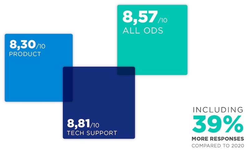 Among these indicators, we take a close look at the Net Promoter Score (NPS). To us, the most interesting thing about this score is the consistency it allows. For four years, we have been asking the same questions in our satisfaction survey sent to customers each Spring. We are thus able to accurately compare year-on-year results, analyze shifts and identify solutions to do better regarding notified frustrations. In other words, the NPS enables us to shape our continuous improvement methods.
