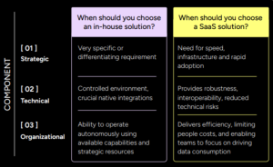 To be effective these central data product marketplaces for data sharing require powerful functionality, an intuitive interface and a self-service solution that is easy to maintain, manage, and extend. That’s why, while it may seem straightforward for IT teams to build their own solution, partnering with a specialist Software-as-a-Service (SaaS) data product marketplace provider is the better option in terms of performance, cost-effectiveness, usability and scalability. Making the right choice isn’t just about technology – it has to be based on an understanding of overall strategy, internal team efficiency, time-to-market, and adoption by the wider business.