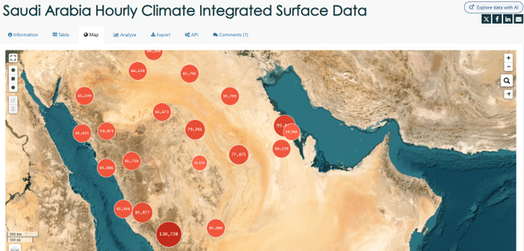 A further example of data innovation is from the King Abdullah Petroleum Studies and Research Center (KAPSARC), a leading advisory think tank focused on global energy economics and sustainability. It is sharing data with researchers across the globe, providing over 1,300 datasets in a range of formats, including maps, dashboards and other visualizations. It has seen usage increase to over 200,000 annual downloads, with visitors from 160 countries around the world.