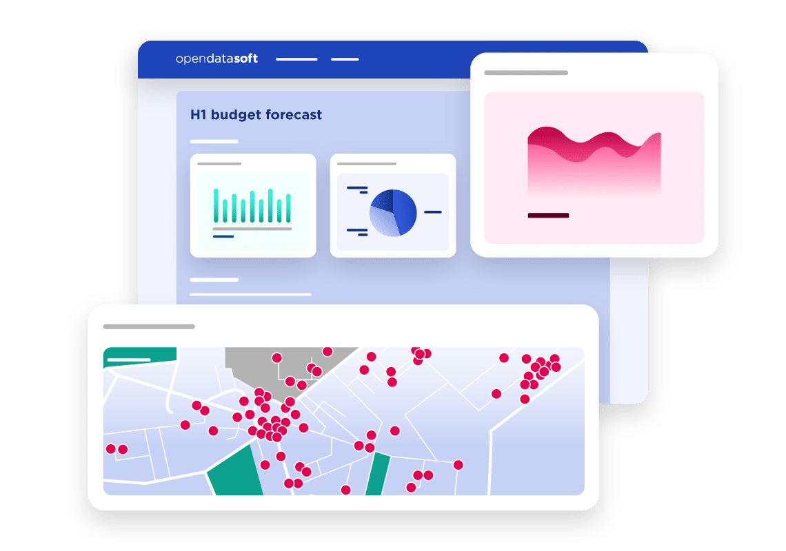 Use your portal to deliver the full picture to employees, external audiences and customers through reports and data stories that combine multiple data assets in a single page. You can bring together information from inside and outside the organization on a specific topic or theme through your portal, giving context to your activities and communicating effectively on your performance and strategy through data.