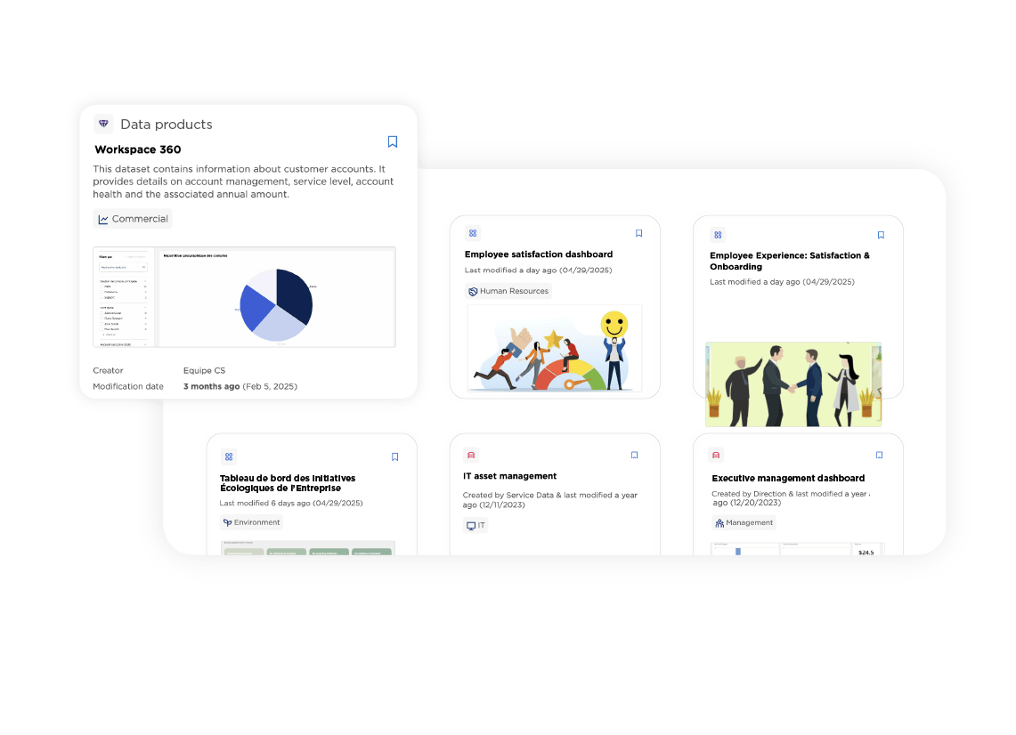Thanks to AI-powered search, your data products are easily discoverable and stand out from other data assets, allowing your users to quickly find the information they need, maximizing the value of your data.