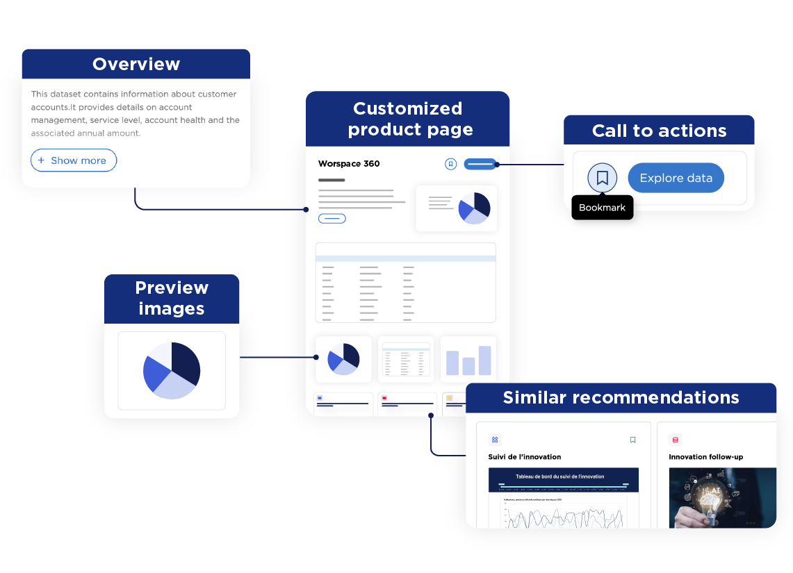 To ensure long-term usage, your data products must be as appealing as a physical consumer product or digital service. That means ensuring they have a neat, attractive, and intuitive design and compelling experience to capture attention and build confidence in their usefulness. Quickly create dedicated presentation pages, personalized for each data product, highlighting essential information about its content and how it can be used in a clear and engaging way. This strategic approach maximizes data product use, ensures rapid adoption, and delivers immediate impact, guaranteeing user uptake.