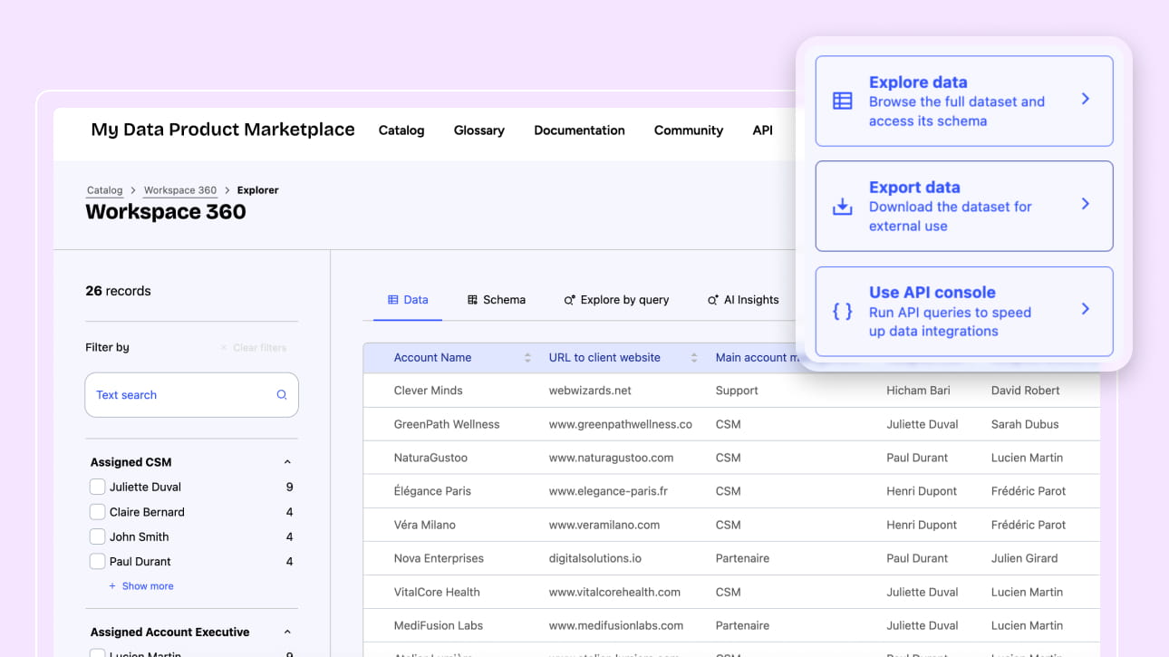 • Integrating a data catalog with a data marketplace combines technical asset inventory with simplified data access for business users. This complementarity structures governance while democratizing usage through an intuitive interface, fostering collaboration and adoption. Organizations thus gain efficiency, agility, and faster decision-making.