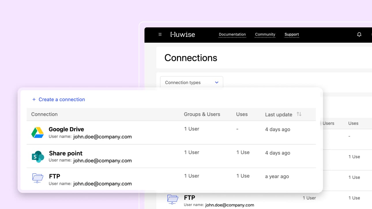 Empower your users by sharing your connections to third-party tools securely from within Huwise. Make it easy for them to enrich the catalog by publishing new data assets through their tools of choice.