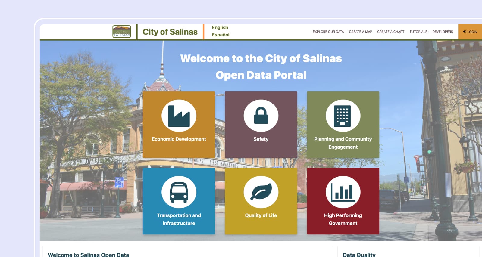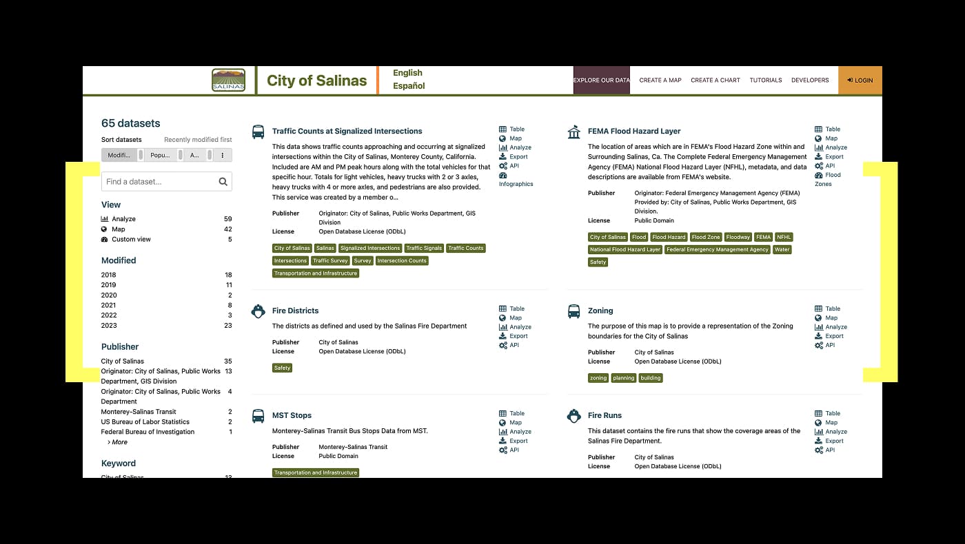The City of Salinas is ethnically diverse, with a majority of our population being Spanish-speaking. To ensure information is easily understandable to all citizens and local businesses, the Salinas data marketplace is therefore natively available in both English and Spanish.