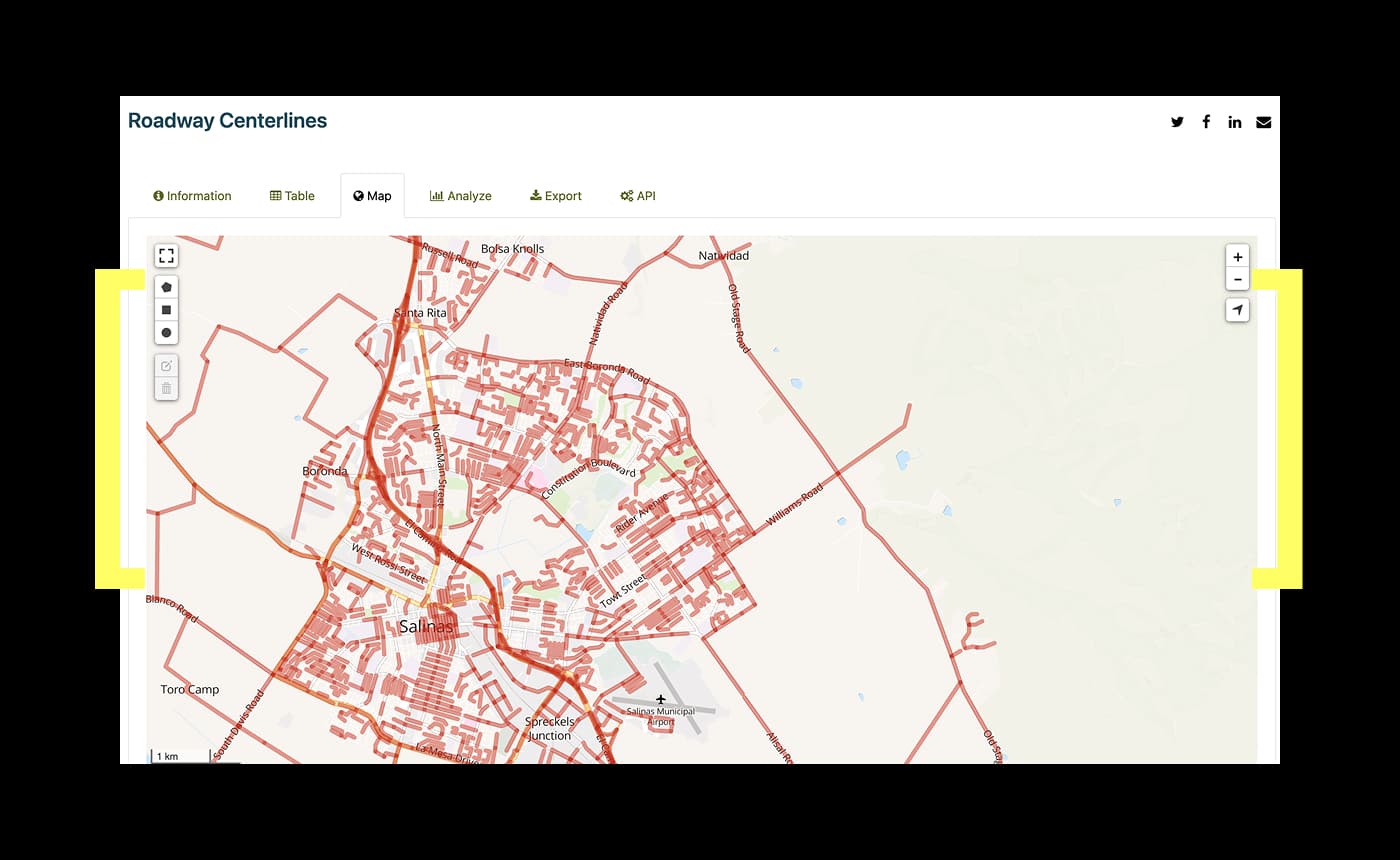 Citizens and businesses can now automatically visit the portal and find the information they need, including anonymized crime data, mobility data on traffic and bikeways, and the marker information used by engineering companies when carrying out construction work in Salinas. Data can be downloaded in multiple formats, visualized through maps and dashboards or automatically connected to through APIs for every dataset.