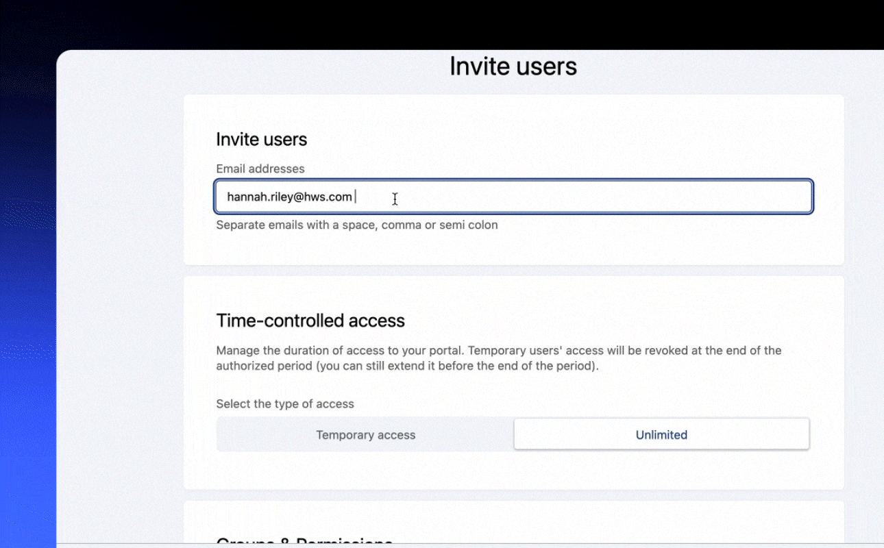 Allow all employees, your customers and your partners to connect to the platform with their business email address.