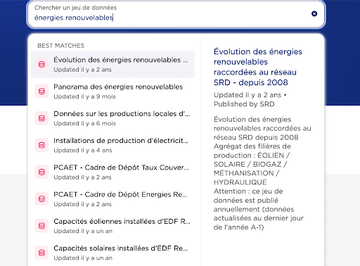 - des datasets correspondant au thème recherché,