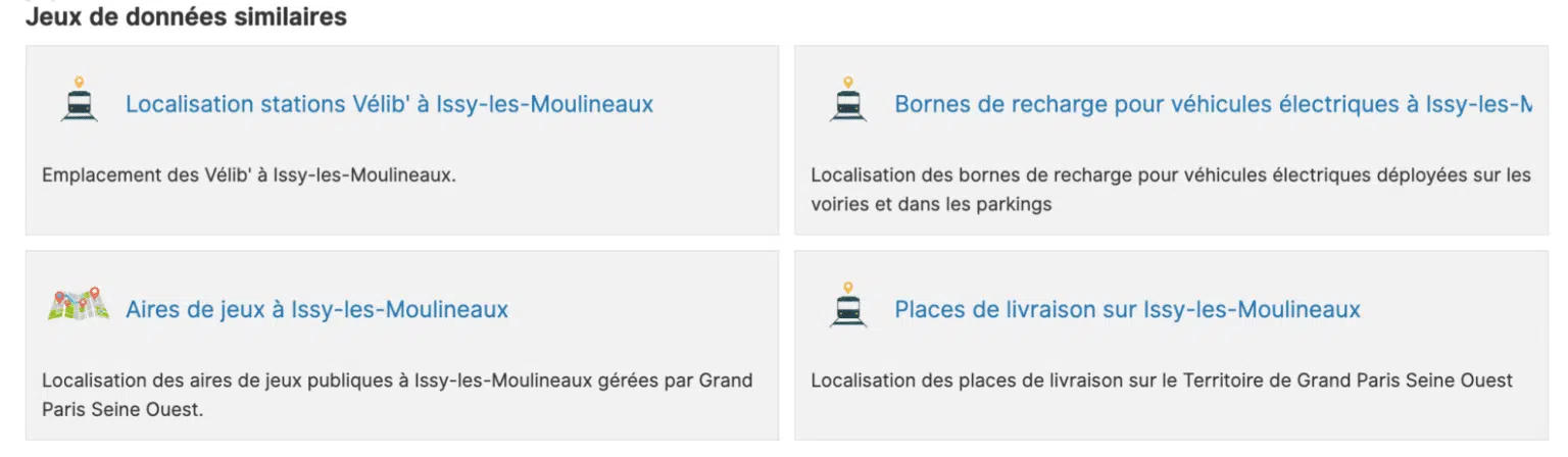 L’ensemble des jeux de données les plus pertinents sont ainsi affichés sur les fiches des actifs data consultés par les utilisateurs.