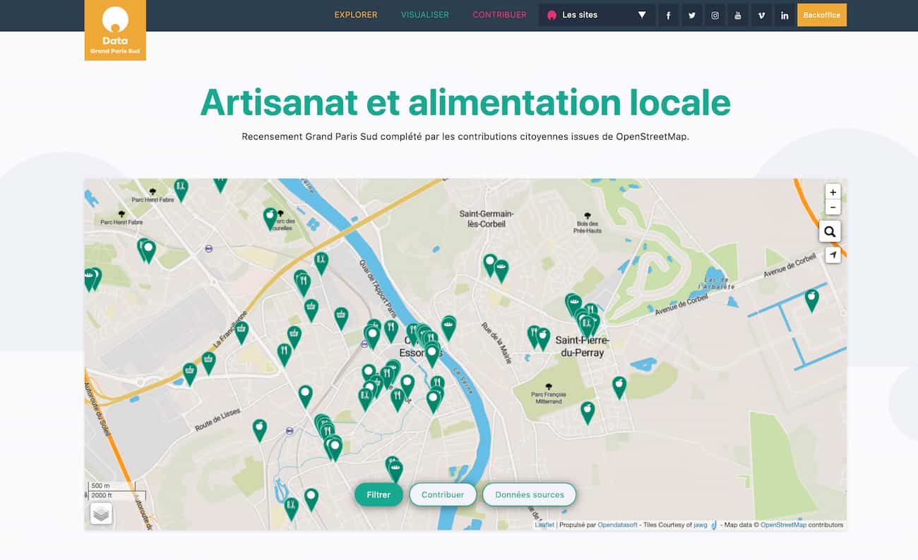Le jeu de données pour lequel l’équipe de Grand Paris Sud nourrit le plus d’attentes en terme de contributions est celui qui met en avant l’Artisanat et l’Alimentation locale. Ce dernier est le fruit d’un savant mélange de données provenant de l’agglomération, des apports issus d’Openstreetmap et… des futures contributions issues du formulaire. “Ce jeu de données, qui met la production locale en lumière, est plus que jamais d’actualité. Nous espérons que tout le monde va s’en emparer”, exprime Hacène. “Nous en faisons la promotion par le biais de flyers distribués par les communes et via des stickers “consommer local” affichés sur les vitrines des commerces.” Une belle rencontre entre la sphère virtuelle et le monde “réel”.