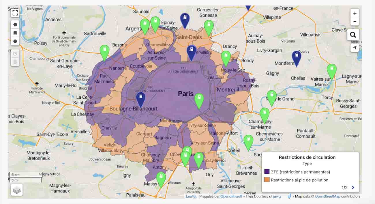 Il s’agit d’une cartographie qui permet de mettre en lien à la fois le dynamisme autour de la mobilité gazière (stations et véhicules) et son aspect environnemental. Cette illustration permet d’apporter une image concrète de l’impact des réglementations en vigueur sur l’établissement des zones à faible émission. Ces dernières obligent les entreprises et les particuliers à adopter des véhicules de plus en plus propres et de repenser leurs déplacements au sein de certaines zones.