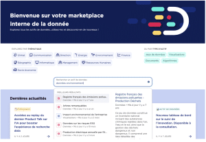 - Expérience marketplace : pour rentabiliser pleinement le patrimoine de données, il est essentiel de garantir leur utilisation. L’adhésion d’un large public et une navigation en self-service sont des facteurs clés pour y parvenir. La solution Huwise répond à ces besoins en offrant la possibilité de personnaliser la marketplace selon la charte graphique de chaque organisation, assurant ainsi une expérience cohérente et alignée avec l’identité visuelle. Elle propose également des fiches produits contextualisées pour présenter clairement chaque actif de données, guidant ainsi les utilisateurs dans leurs recherches autonomes, comme sur une véritable marketplace. Cette approche libère du temps aux équipes data, moins sollicitées, tout en favorisant une exploitation optimale du patrimoine de données. En rendant l’expérience utilisateur attractive et intuitive, Huwise transforme la navigation en un véritable levier d’engagement à l’échelle.