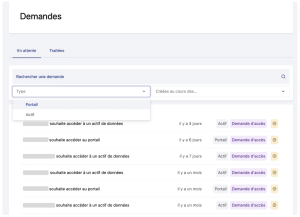 - Gestion des demandes d’accès centralisée : pour éviter aux utilisateurs métiers de naviguer dans une multitude d’outils et aux équipes de gouvernance de gérer des demandes éparpillées, la marketplace Huwise offre une solution idéale. Elle centralise l’ensemble du patrimoine de données utile aux métiers, permet de restreindre l’accès à certains utilisateurs ou départements, tout en offrant la possibilité de connaître l’existence des données et de soumettre des demandes d’accès. Ces demandes sont ensuite centralisées, offrant une vue complète des demandes passées et en cours d’approbation.