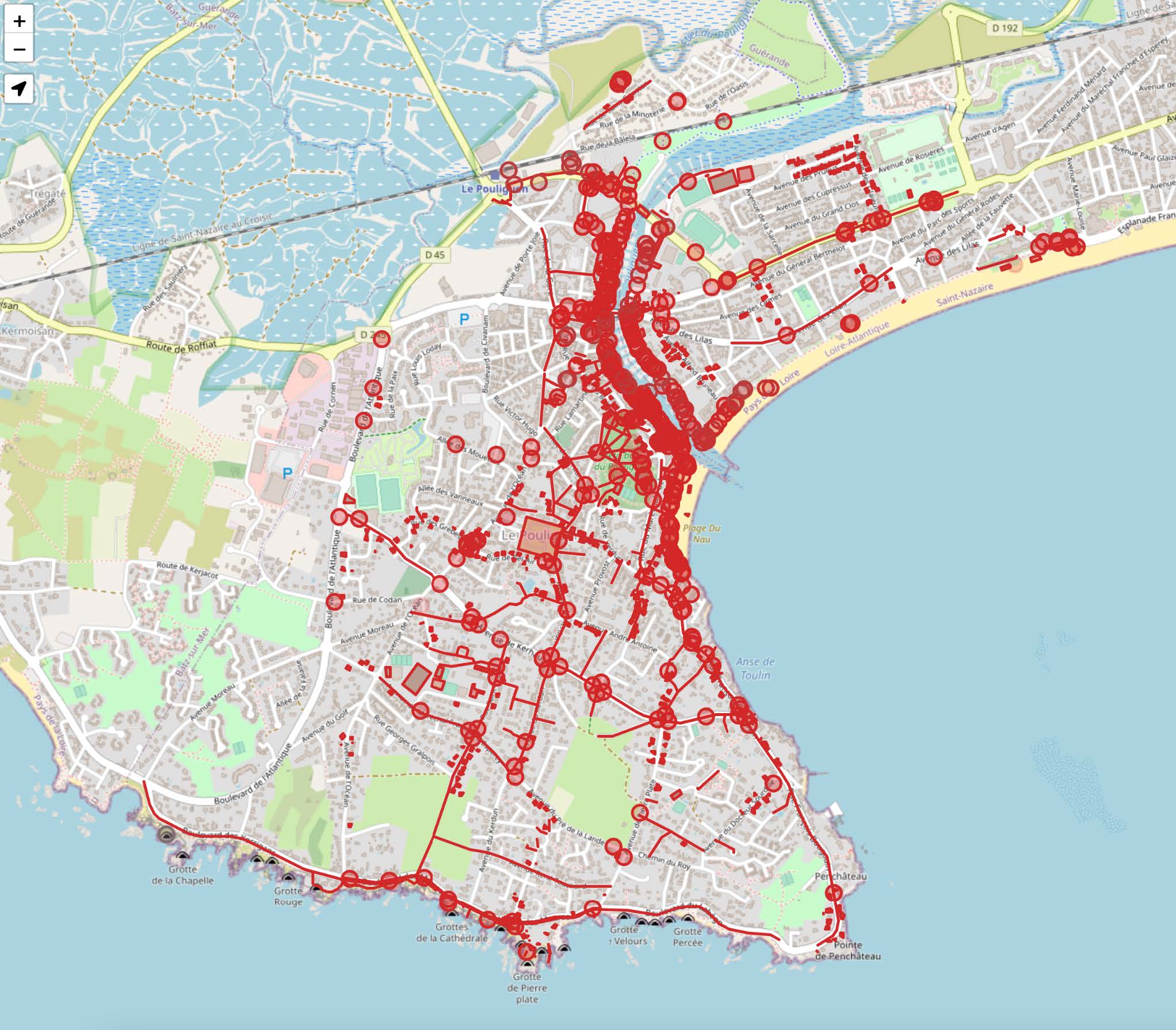 La mission de Huwise est de démocratiser la donnée. Pour y parvenir, cela nécessite des données de qualité ! Plus de 100 collaborateurs de Huwise ont consacré plus de 2h à sillonner les environs pour contribuer et améliorer de nouveaux points sur OpenStreetMap ! La zone couverte comprenait le port, la plage et les zones pavillonnaires. On peut voir sur la carte ci-dessous les étendues des ensembles de modifications effectuées.