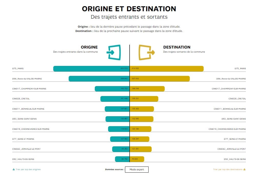 La solution est née d’un projet de R&D dédié à une étude de grande envergure pour le compte d’un acteur du transport. Pour ce premier cas d’usage, nous avons développé des indicateurs permettant de mesurer les flux de déplacement entre deux périmètres géographiques afin de vérifier les bénéfices du projet et par la suite dimensionner la future ligne de transport.