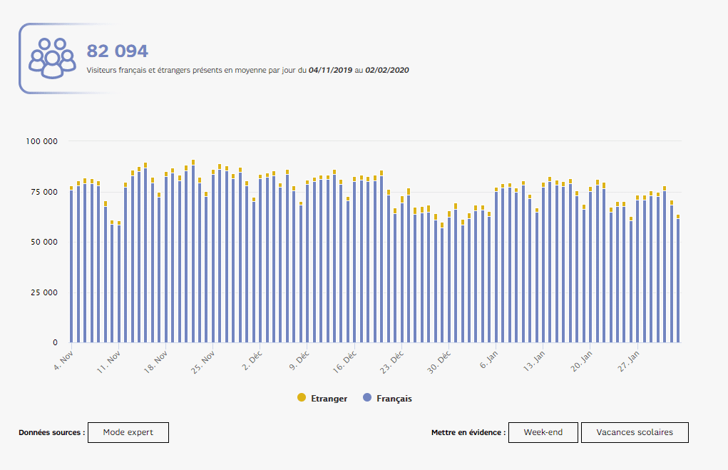 Nous avons ensuite développé de nouveaux indicateurs permettant de répondre aux problématiques d’autres acteurs : les collectivités (fréquentation selon la domiciliation des visiteurs, matrice origine/destination…) ou encore les professionnels du tourisme (distinction des touristes/excursionnistes, provenance des visiteurs, durée de séjour…), de l’évènementiel (temps de présence moyen des visiteurs…) et du retail (délimitation d’une zone de chalandise, récurrence de visite des visiteurs…)