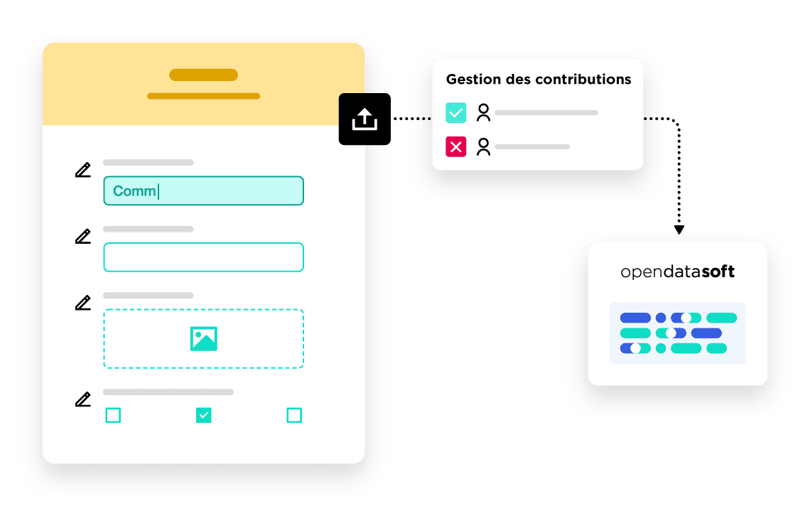 La fonctionnalité de formulaires de collecte de données permet d’améliorer la fiabilité et la qualité des données de votre data marketplace, d’automatiser l’enrichissement et la mise à jour des informations afin de vous faire gagner un temps précieux. Développés pour améliorer la collecte des données et donc leur mise à jour et leur fiabilité, ces formulaires présentent des avantages tant pour les producteurs de données que pour les administrateurs d’une data marketplace.