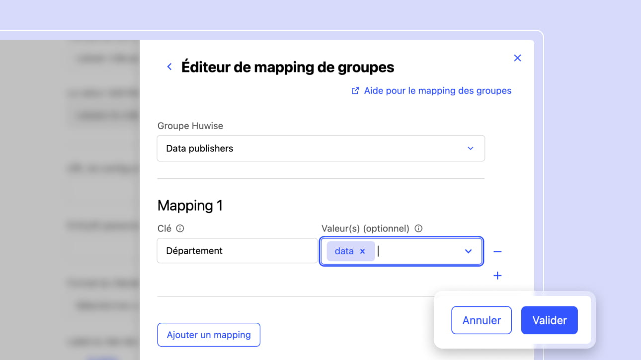 Notre solution intègre nativement des options avancées de sécurité, comme l’authentification multifacteur (MFA) et le Single Sign-On (SSO), entièrement configurables. Grâce au mapping des groupes, les organisations utilisant le SSO peuvent synchroniser automatiquement leurs utilisateurs et attributs depuis leur annuaire d’entreprise, simplifiant ainsi la gestion des accès et réduisant la configuration manuelle sur leur data marketplace Huwise. Une équipe dédiée à la sécurité accompagne nos clients pour garantir une mise en œuvre optimale.
