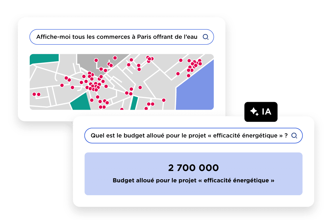 Snowflake est un outil technique principalement conçu pour les ingénieurs et analystes de données maîtrisant le SQL. En l’intégrant avec Huwise, vous pouvez élargir le partage de vos données et toucher des publics non techniques grâce à des données lisibles et compréhensibles, faciles à exploiter et à valoriser. Les utilisateurs n’ont pas besoin de connaître le SQL et peuvent même interroger les jeux de données via l’IA pour générer automatiquement des visualisations.