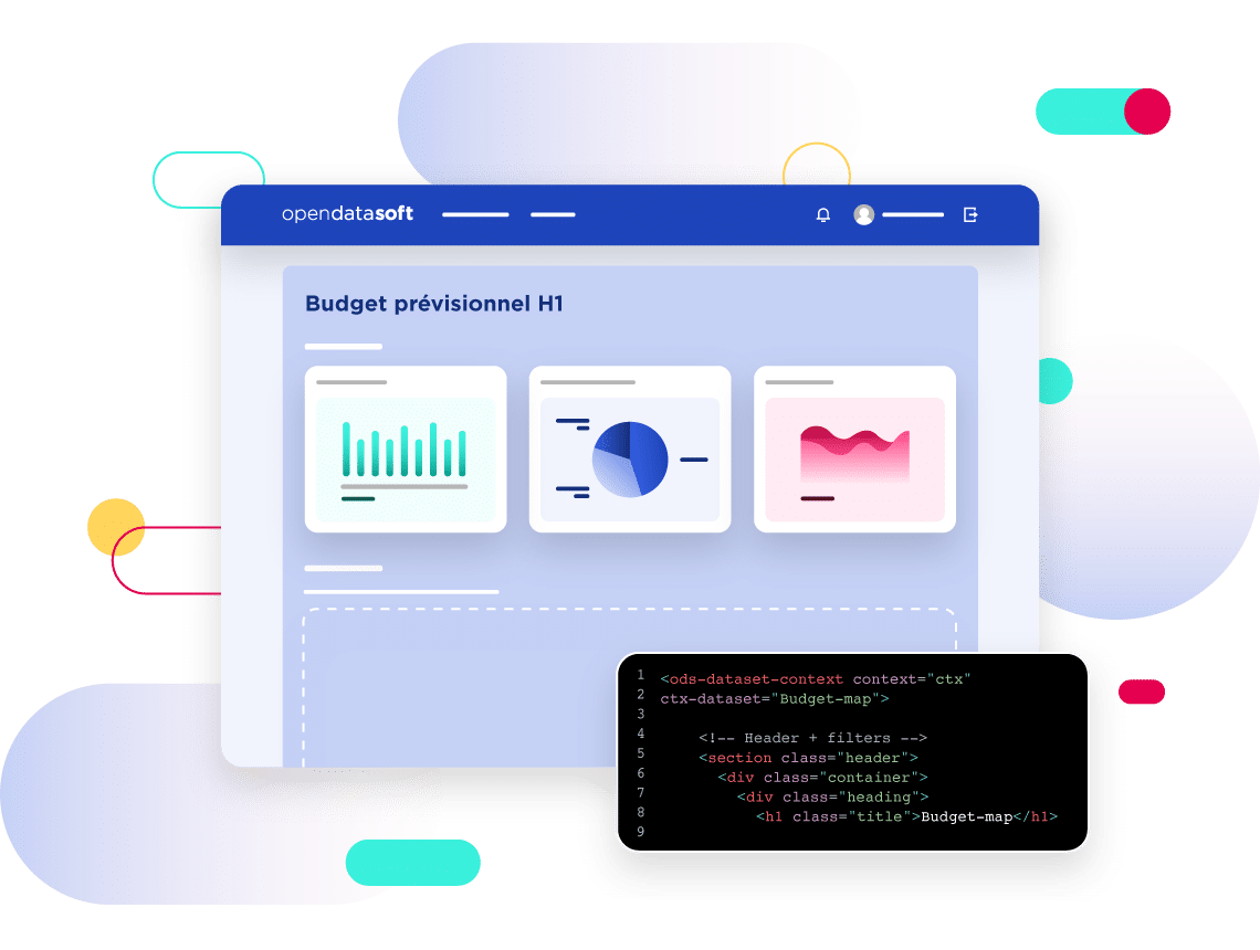 Utilisez notre éditeur de code polyvalent pour concevoir une gamme variée de pages, allant des visualisations de données aux pages de présentation sur les portails de données. Il offre une flexibilité et une personnalisation équivalentes à celles des éditeurs de sites web.